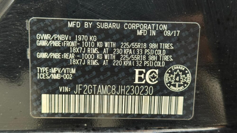 2018 Subaru Crosstrek Limited CVT W/Eyesight Pkg